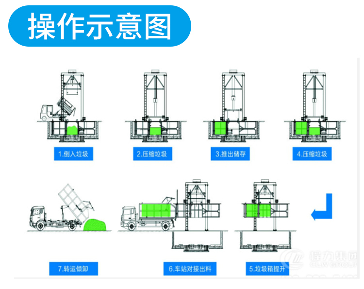 ◇設有垃圾儲存箱,適合集裝箱式散裝垃圾運輸車(chē)卸料,減少運輸費用。